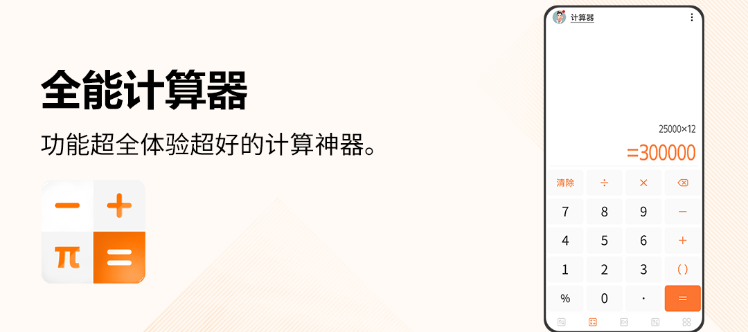 独创的锁屏计算器,让您可以秒开计算器,从此以后可以把桌上的计算器扔掉了。